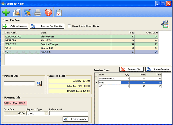 MedOffice features a Point-of-Sale inventory control and sales tracking system