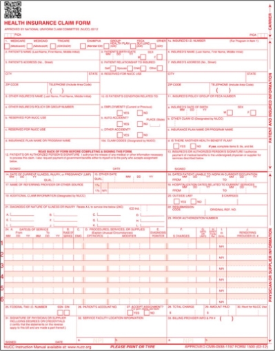 CMS-1500 2-Part - Continuous (White/White Paper Sequence) (NEW VERSION 08/05)